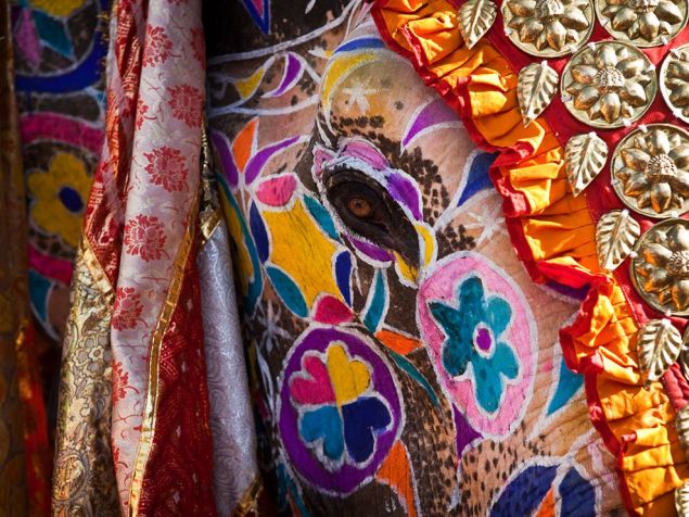 The Elephant Festival is one of the most popular festivals in Jaipur and takes place at the famous Chaugan Stadium in March. It begins with a beautiful procession of bedecked elephants, camels, horses, and folk dancers. The mahouts proudly embellish their elephants with vibrant colors, jhools (saddle cloth), and heavy jewelry.